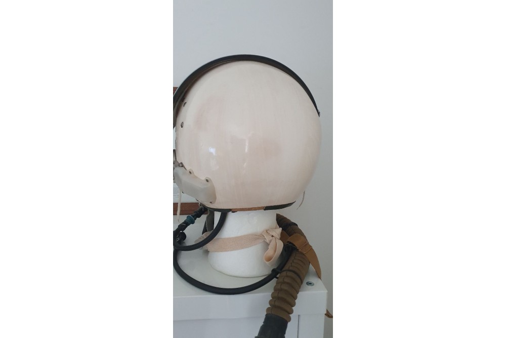 Très beau casque de pilote Soviétique ZSH5 incluant le bladder occipital. Casque utilisé par les pilote dans les années 80 notamment sur Mig29 et Su24. Tête en polystyrène incluse.