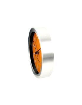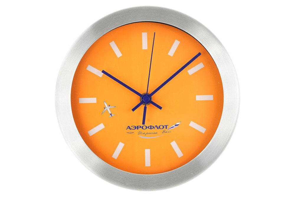 AEROFLOT clock in perfect working order and very good condition, with a distinctly 1970s design featuring this orange color and the aluminum frame. Please note that the dial color is solid; the visible gradient is due to lighting and cast shadows. Diameter: 20 cm, height: 4.5 cm.