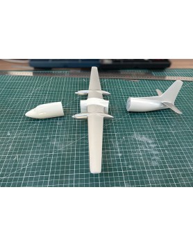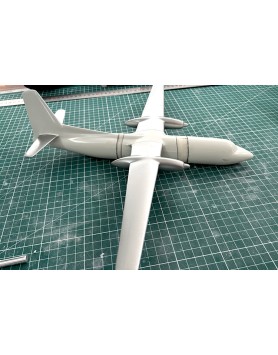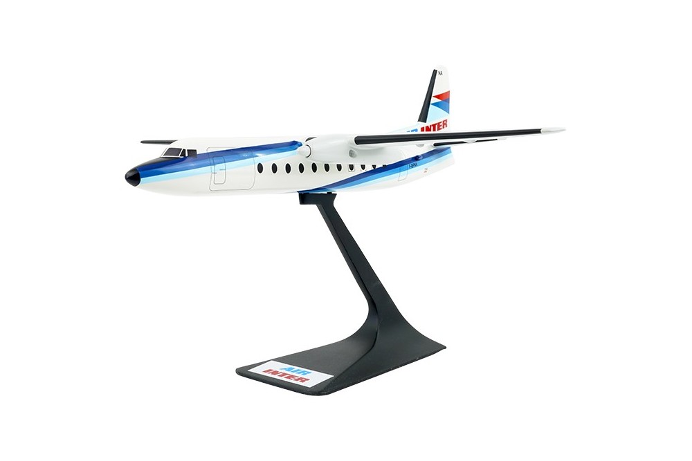 This model was created at the request of a client. Since no “agency-style” model of the correct Fokker 27 version was available, the project began with the standard Friendship, which is noticeably shorter. The base was a solid resin model originally fitted with a ventral radome and weaponry in Royal Thai Navy colors. After removing its military features, the fuselage was cut into three sections to add the missing segments, transforming it into the stretched F27-500 version. Once this work was completed, the model was ready to wear the distinctive Air Inter livery.