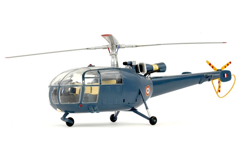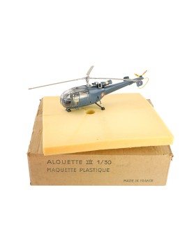 Rare Manufacturer’s Scale Model – 1/30, circa 1960, by La Maquette d’Etude et d’Exposition (Aubervilliers) for Sud Aviation. A superb vintage plastic model in remarkable condition for its 65 years of age. Only a few small decal losses are visible (see photos). The model is offered with its original box. The protective foams are no longer present, except for the one securing the main rotor. Dimensions: Length (without main rotor): 32.5 cm / 12.6", Length (with main rotor): 40 cm / 15.7", Main rotor diameter: 33 cm / 13". A beautiful and rare collector’s piece from the golden age of French aviation.