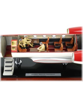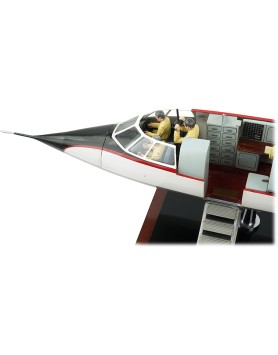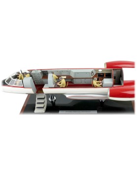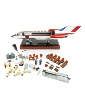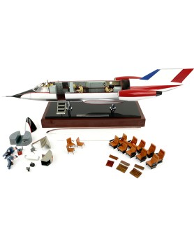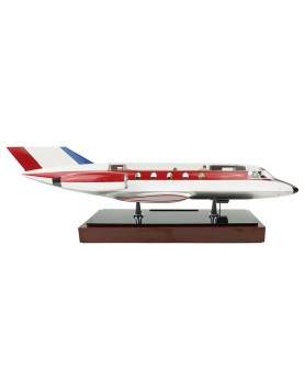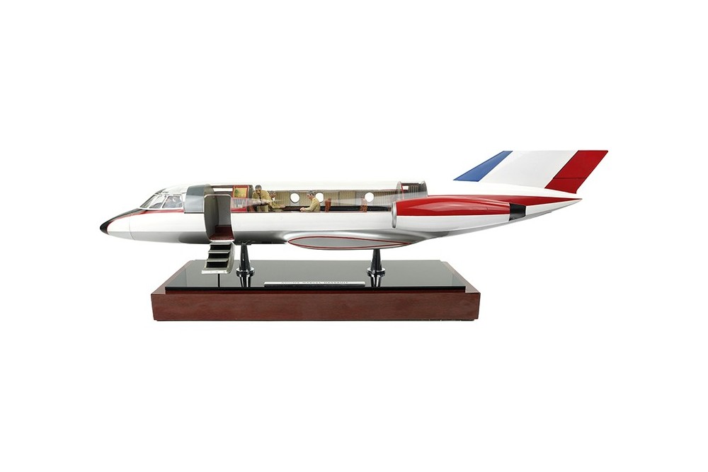 Maquette constructeur aux couleurs du prototype (c. 1963) destinée à montrer les deux aménagements possibles de l'avion : la version d'affaires et la version miltaire (certainement celle destinée au CEV). La maquette est une production de La Maquette d'Etude et d'Exposition (MEE) au 1/20 (longueur du fuselage 80 cm) et permet, à l'aide de différents accessoires, de configurer au choix la version civile ou miltaire de la cabine. La maquette siglée Avions Marcel Dassault est en parfait état ce qui est remarquable compte tenu de ses 60 ans ! Plus de détails et de photos sur la note Focus qui lui est consacrée.