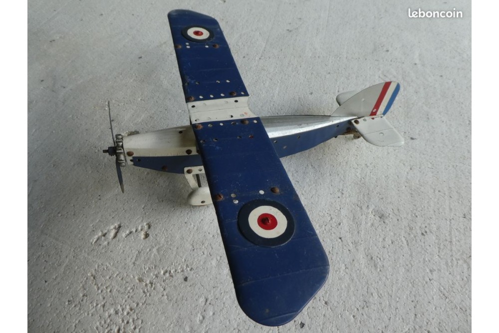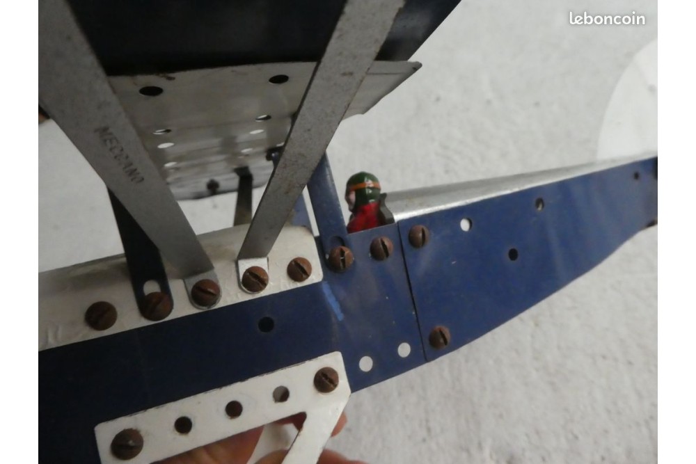 Meccano Airplane Constructor -(26.5cm) avion grand format . tole .MECCANO CONSTRUCTEURS D'AVION . GRAND MONOPLAN pièces d'origine, non restaurées, à priori complet quelques imperfections, voir les photo caoutchouc des roues en cours de dégradation chimique envoi par colissimo 10.70
