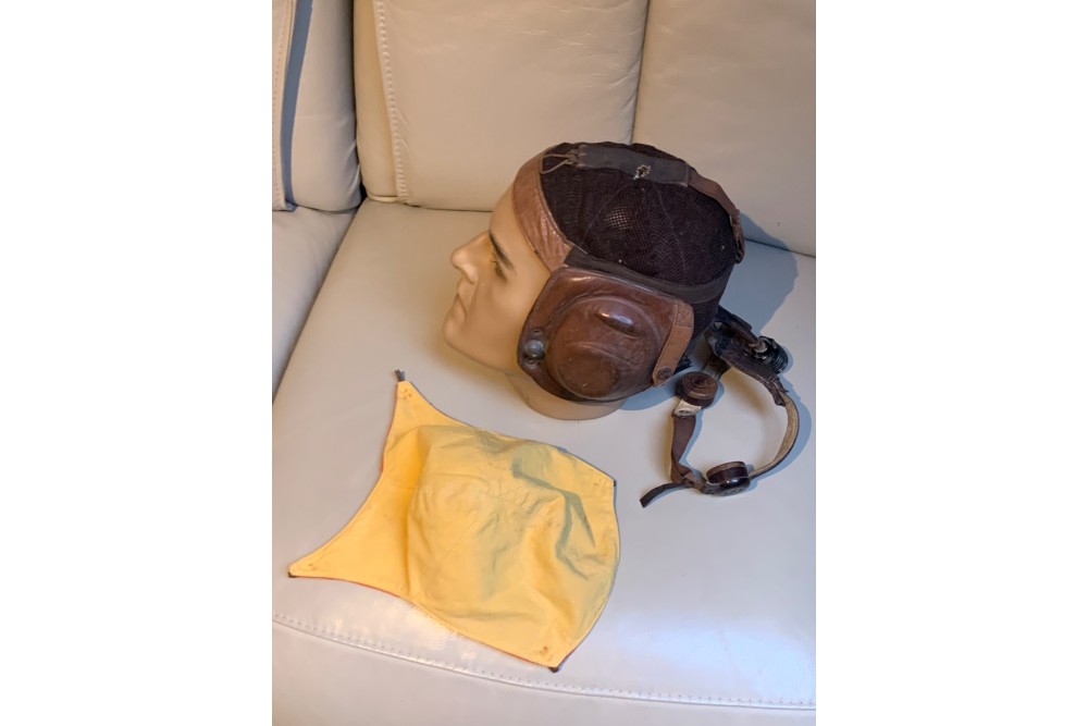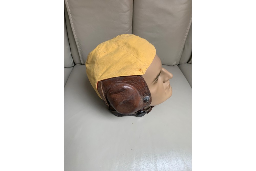 À vendre ce très beau casque, modèle été pilote de chasse seconde guerre mondiale Luftwaffe avec sa rare protection en tissu jaune et rouge complet. La tête n’est pas inclue dans la vente.