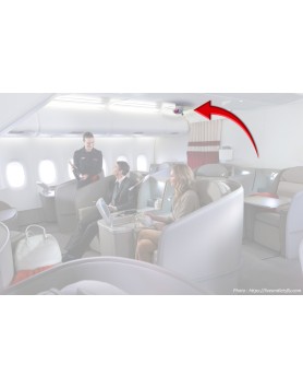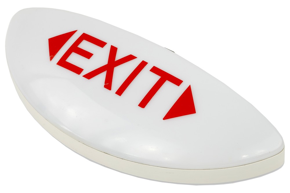 Panneau lumineux "EXIT" provenant de la cabine passager d'un Airbus A380. Éclairage par leds (non testé). Longueur 32 cm, hauteur 11 cm (sans le bloc prise), largeur 9 cm.