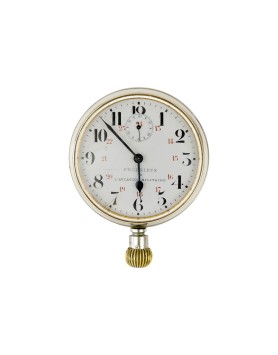 Voici une jolie pièce qui fonctionne parfaitement et qui est complète, puisqu'elle est accompagnée de son étui de fixation en cuir. La montre, amovible, était fixée au tableau de bord à l'aide des œillets de l'étui. Ce petit souvenir de la grande guerre, ancêtre des montres de bord, rappelle qu'à cette époque l'aviation naissante s'équipait de matériels issus de l'industrie automobile avec un mécanisme siglé "Automobile Régulateur". Deux petits défauts sont à signaler : un éclat dans le verre entre les chiffres 9 et 10, ainsi qu'une fêlure du cadran au niveau du chiffe 7 (voir photos). Mais cela n'enlève rien à l'intérêt de cette pièce plus que centenaire, pas plus que cela n'affecte son parfait fonctionnement !