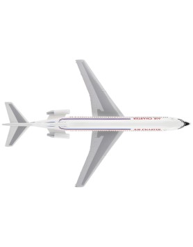 Ancienne maquette d'agence (c. 1986) de la compagnie Air Charter international à l'échelle 1/100. La maquette, en résine pleine, tout comme son socle, est une production Modèle ANTOINE. En dépit de très légers petits manques en bout d'aile droit et sous l'empennage droit (voir photos) la maquette est en très bel état. C'est une maquette intéressante et assez rare. Dimensions : envergure 32,5 cm, longueur 46 cm, hauteur totale sur socle 23 cm.