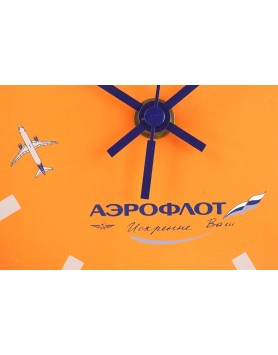 Horloge AEROFLOT en parfait état de fonctionnement et en très bon état, dans une conception assez années 70 avec cette couleur orange et le contour en aluminium. A noter que la couleur du cadran est unie, le dégradé apparent est dû à l' éclairage et aux ombres portées. Diamètre 20 cm, hauteur 4,5 cm.
